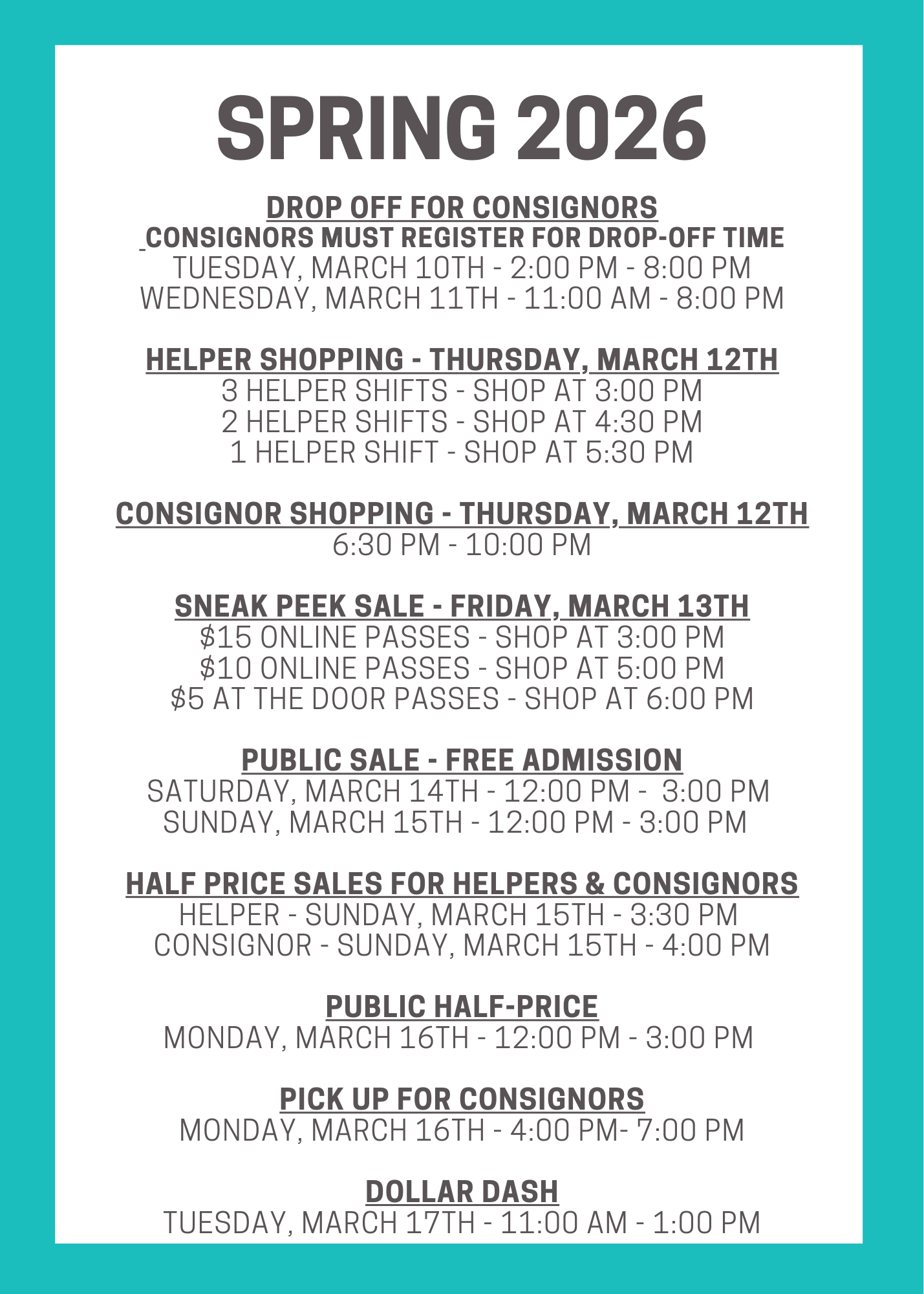 Starting with our dedicated consignors, we offer the chance to snag those coveted helper shifts. And guess what? If there are still openings, we'll open it up to the public, so everyone can join in the fun.